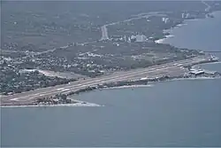 Simón Bolívar International Airport (Spanish: Aeropuerto Internacional Simón Bolívar)[1] (IATA: SMR, ICAO: SKSM) is an international airport serving the city of Santa Marta, Colombia. The airport is located 14 kilometres (8.7 mi) south of Santa Marta city center, on the shores of the Caribbean Sea. 18 kilometres (11 mi) north of the municipality of Ciénaga in Colombia.