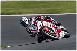 For 2009 he left Jentin to join MSS Colchester Kawasaki. Despite injuring his collarbone pre-season he qualified on the front row for round 3 at Donington Park, and took a 4th-place finish at round 4 at Thruxton. Andrews again impressed at Mallory Park, leading race one before being catapulted out by Josh Brookes in an incident which eliminated seven riders.[5] He was already riding injured at this point, and an operation on his wrist immediately after this round caused him to miss the 3-race meeting at Brands Hatch[6] He took his first career podium at Cadwell Park, finishing 4th on the road but being promoted when on-the-road winner Leon Camier was excluded for ignoring a black and orange flag.[7] In race one at the same venue he touched with team-mate Julien da Costa in race one, finishing fifth ahead of the Frenchman.[8] He was successful at Croft despite using no rider aids. He also contested the World Superbike round at Donington, finishing 10th in race 2 after passing the leading works Kawasaki of Broc Parkes. He finished the year by finishing 7th on his debut in the Macau street race.[9] Andrews re-signed for the MSS Colchester Kawasaki team for 2009 alongside Gary Mason.