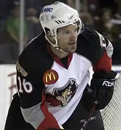 Simon Ferguson (born April 6, 1983) is a Canadian former professional ice hockey forward who played in the American Hockey League (AHL). He spent his last two seasons abroad in Europe before retiring after the 2012–13 season with the Sheffield Steelers in the Elite Ice Hockey League (EIHL).[1] He is currently the head coach of minor junior team, the Okanagan Rockets in the BCMML.