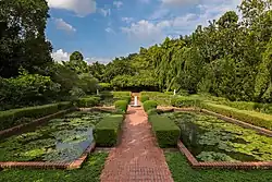Tropical plants line the bank of the Saraca Stream as it meanders its way down a small hill. The main highlights of the stream walk are the Yellow Saraca trees (Saraca cauliflora) and Red Saraca (Saraca declinata). Other attractions include the Palm Valley, Bandstand area, Sun Garden and Sundial Garden.