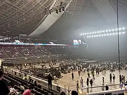 It regularly hosts events such as music concerts, badminton, basketball, netball, tennis, esports, pro-wrestling, mixed martial arts, kickboxing, and monster truck races. The Singaporean ONE Championship regularly hosts its events here. In 2015, the Singapore Indoor Stadium sold 72,342 tickets for the entire year.[1] In 2022, the stadium was the venue for The International 2022, the annual Dota 2 world championship esports tournament and the largest single-tournament prize pool of any esport event.[2] On 16–18 February 2023, Irish pop band Westlife's three shows made them the first international group to perform at the stadium thrice in one tour.