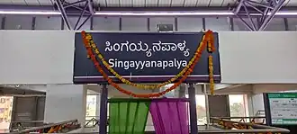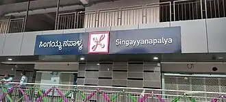 Singayyanapalya (formerly known as Mahadevapura) is an elevated metro station on the East-West corridor of the Purple Line of Namma Metro in Bengaluru, India. This station is located near the Hindustan Petroleum Corporation Ltd., Phoenix Marketcity, VR Bengaluru, Exxonmobil Lubricants Pvt. Ltd., DTDC office and many more.[1][2][3]