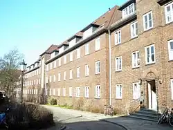 Centralbygningen in Frederiksberg is considered to be the first European one-kitchen house (a separate municipality forming an enclave in Copenhagen), which the former school principal Otto Fick had built in Forchhammersvej 4–8 in 1903. It was described as a "small-style social event", was explicitly set up for working, married women and was organized as a private enterprise in which both tenants and staff participated through contributions and, according to the annual balance sheet, in the profits. The five-storey apartment building with three- and four-room apartments, each without kitchens, had central heating, hot water pipes and a central vacuum cleaner. Electrically operated dumbwaiters led from the central kitchen in the basement to the preparation rooms in the apartments, where they were concealed behind wallpaper doors. The kitchen employed a kitchen manager, five assistants and a machinist and stoker.[35]