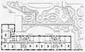 The Einküchenhäuser Friedenau at Wilhelmshöher Straße 17–20 were also ready for occupancy on April 1, 1909. It is a building complex by architect Albert Gessner consisting of three houses, two built symmetrically around a street courtyard with a roofed garden hall, the third adjoining the street. They are plaster buildings with hipped roofs, arcades, loggias and balconies, which are reminiscent of the country house style. The houses were equipped with partly open, partly covered roof terraces and adjoining shower rooms, a gym with equipment, a storage room for furniture, moth rooms, bicycle rooms, dark rooms for photographic work, laundry rooms, drying rooms, ironing rooms and a central vacuum cleaner system. The central kitchen was located in the basement of house no. 18/19, and the food supply was provided via a total of nine dumbwaiters, which in turn were connected to a track system in the basement rooms. A kindergarten was also set up, which was run by a Reformpädagogin. The central kitchen had to be abandoned in 1917/1918.[42]