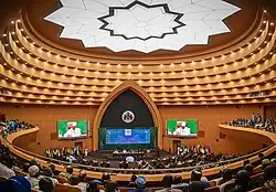 The conference center was built and funded by Chinese investment of US$50 million in the country.[1][2] The center was treated as an important international gesture between the two countries, the first collaborative project since resumption of relations.[1] The center was built in part to host the Organisation of Islamic Cooperation.[2] The first major event in the space was the Annual General Meeting of the African Development Bank in August 2020.[7]