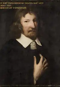 Sir Robert Throckmorton, 1st Baronet (1599–1650) was created a baronet, of Coughton, co. Warwick, on 1 September 1642.