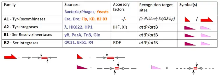6. ^ a b c d e f Turan, S.; Bode, J. (2011). "Site-specific recombinases: From tag-and-target- to tag-and-exchange-based genomic modifications". The FASEB Journal. 25 (12): 4088–107. doi:10.1096/fj.11-186940. PMID 21891781. S2CID 7075677.
