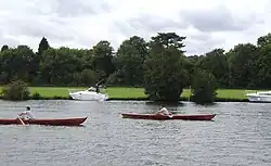 In the 1970s the regatta enclosure at Kingston upon Thames became unavailable because of redevelopment. The last regatta was held at Teddington in 1972, and in 1974 it moved to its present site at Henley to become the Skiff Championships Regatta.[1]