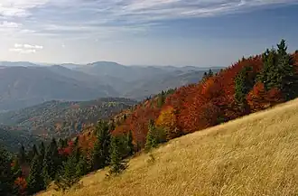 The Skole Beskids National Nature Park (Ukrainian: Національний природний парк «Сколівські Бескиди») covers the Skole Beskids Range of the Carpathian Mountains on the western edge of Ukraine. The national park was created in 1999 to protect the beech and beech-fir forests of Carpathians, and to provide for environmental, ecological, aesthetic, educational and recreational uses. The park is in Stryi and Drohobych Raions in Lviv Oblast.[1]