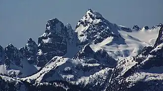 Sky Pilot Mountain is the highest mountain in the Britannia Range of the Coast Mountains of British Columbia, Canada. It is sometimes considered the highest peak in the North Shore Mountains of the Vancouver area. It forms the basis of the Sky Pilot group, a popular mountaineering area which includes several nearby rocky peaks including Co-Pilot (1,881m), Ledge Mountain (1,964m), Mount Sheer (1,752m), and Ben Lomond (1,654 m).