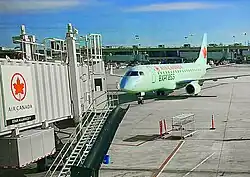 Sky Regional Airlines (SRA) was an airline whose corporate headquarters was located on the property of Toronto Pearson International Airport, Mississauga, Ontario, Canada. Linked with Skyservice Business Aviation, it began operation under the Air Canada Express brand on May 1, 2011.[3] The airline began offering daily flights between Billy Bishop Toronto City Airport and Montréal–Pierre Elliott Trudeau International Airport.[4][5]