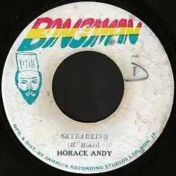 "Skylarking" is a single by Jamaican singer and songwriter Horace Andy, produced by Studio One founder Coxsone Dodd.[1] The song, lyrically an admonishment of loitering youths who expect handouts, has been described as Andy's signature tune.[1][2] It was first issued, rendered "Sky Larking", on Dodd's Jamaica Today - The Seventies compilation in 1971.[3] The song became a popular sound system hit, prompting a release as a single on the Studio One subsidiary Bongo Man.[4] It topped the Jamaican singles chart published in The Gleaner in August 1972.[2][3] Andy cut the song again in 1974 for Bunny Lee, who licensed the recording to the UK-based Venture Records.[3] A 1992 cover by Garnett Silk revived the song's popularity in Jamaica.[3] Andy sings excerpts from "Skylarking", as well as his later song "Money Money" (1980), on Massive Attack's "Five Man Army" (1991).[5]