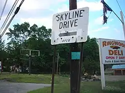Skyline Drive is a 5.84-mile-long (9.40 km) road in Northern New Jersey, between Interstate 287 (I-287) in Oakland, Bergen County and County Route 511 (CR 511) in Ringwood, Passaic County, passing through Ringwood State Park in the Ramapo Mountains. It is a major route for those in the Ringwood and Wanaque area to get to Interstate 287. The road is also known as County Route S91 in Bergen County and County Route 692 in Passaic County. County Route S91 continues south for 0.73 miles from the southern terminus of Skyline Drive on West Oakland Avenue to U.S. Route 202 (US 202).