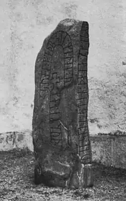 1. ^ a b c d e Jansson, Sven B. F. (1964). "Runstenen i Ryssby Kyrka (Sm 39)" (PDF). Fornvännen. 59. Swedish National Heritage Board: 225–235. ISSN 1404-9430. Retrieved 5 August 2011.