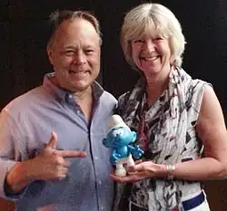 Director Kelly Asbury with Peyo's daughter, Véronique Culliford