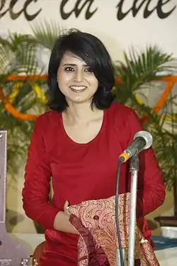 Sniti Mishra is an Indian singer. She is a trained vocalist in Hindustani classical music who appeared for the first time in Zee TV musical reality show, Sa Re Ga Ma Pa Singing Superstar.[1] She had been associated with Indo-Swedish Fusion jazz band Mynta. She has also worked with the percussionist Sivamani and Grammy Award- nominated jazz musician-keyboardist Louis Banks. She has performed classical and fusion concerts in India and worldwide.[2] She was honored with 'Baji Rout Samman' for the year 2016 by Utkala Cultural Association, IIT Bombay. Sniti has her formal education in Economics and pursued her MBA in Finance and Control.