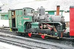 Built specially for the line in 1895 and 1896, Nos. 1 to 5 were manufactured by the Swiss Locomotive and Machine Works of Winterthur. The first locomotives cost £1,525 (equivalent to £222,499 in 2023).[11] Nos. 1 to 3 were delivered before the line was open and used on construction work. On at least two occasions, trials have been made on oil burners on Nos. 2 to 5, the latest being on No. 2 in the late 1990s.