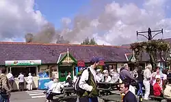 Passengers were still carried during the Second World War. The Western Mail for 12 May 1943 reported that two trains per day would operate from Llanberis (at 1.15pm and 4.00pm) and people could still book to stay at the summit hotel.[21] However, this appears to have been just propaganda, as the summit was closed for military purposes from 1942 until the end of the war.