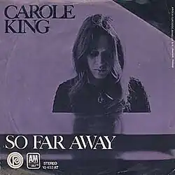 “So Far Away” is a song written by Carole King, which appeared on her 1971 album Tapestry. The recording features James Taylor on acoustic guitar. In addition to Taylor, and King on piano, instruments include Russ Kunkel on drums, Charles Larkey on bass guitar and Curtis Amy on flute.[3]