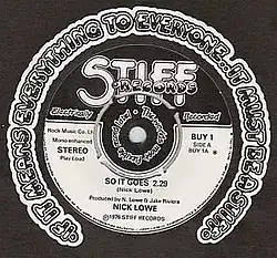 "So It Goes" is a song written and recorded by Nick Lowe in 1976. The single was Nick Lowe’s solo debut following his departure from Brinsley Schwarz, and was the first single released on Stiff Records.[4]
