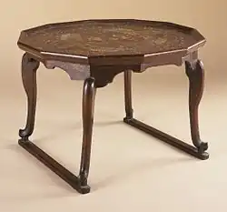 Soban (Korean소반; Hanja小盤) are small tray-like tables, usually wooden, used in Korea for carrying food and as individual dining tables. They are generally made of walnut, pine or ginko wood, often sourced from the carpenter's local area.[1][2] Carvings and murals showing images of soban have been found in tombs dating back to the time of the Goguryeo kingdom. As well as being used for dining, soban were also used for general carrying tasks, as writing desks and as small altars for prayers or for burning incense.[3]