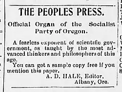 - ^ "The Socialist Ticket," Albany Democrat, vol. 31, no. 34 (March 23, 1906), pg. 4.