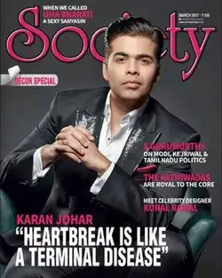 Society describes itself as "India's leading people and lifestyle magazine,"[1] which "has always been the front runner in reporting about the lives of the rich and famous,"[4] and covering "the latest news, controversy or achievements of people in the area of business, politics, art, sports, media or spicy details on socialites."[5]
