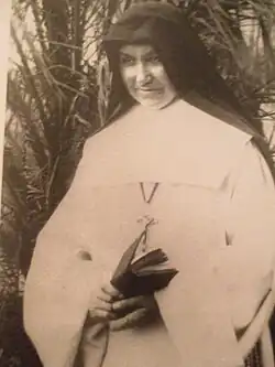 Lavigerie sent the Abbé Le Mauff back to his native Brittany to recruit the first sisters, who were to be "generous, brave, ready for anything and capable of becoming the cornerstones of the society."[4] Le Mauff returned on 9 September 1869 with eight young Breton women, of whom four would persevere. At first the sisters were given the task of looking after orphan Arab children.[5] In January 1872, Marie-Renée Roudaut, cousin of one of the first Breton recruits, reached Algeria with four other volunteers. On 23 June 1872, she took the name of Soeur Marie-Salomé, and on 6 July 1873, she pronounced her first vows.[5]