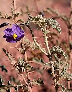 Solanum is a large genus in the Solanaceae family with over 100 different species in the family occurring in Australia, and a large majority of them also being native.[3] Particularly many species occur in arid and semi-arid areas, though many also have wide distributions excluding alpine, saline and aquatic habitats.[3]