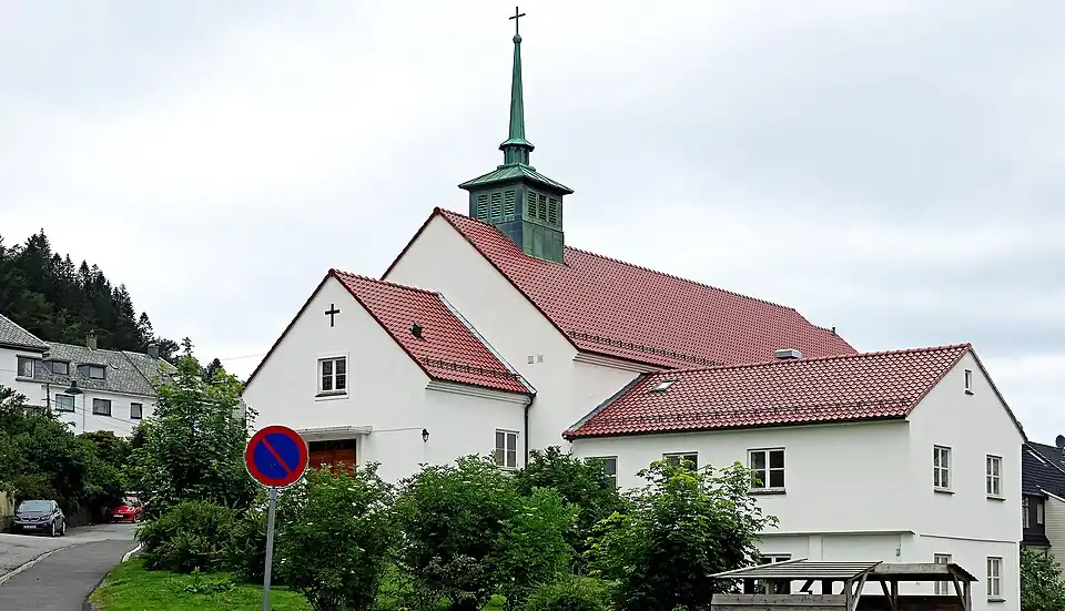 Solheim Church (Norwegian: Solheim kirke) is a parish church of the Church of Norway in Bergen Municipality in Vestland county, Norway. It is located in the Solheimsviken neighborhood in the city of Bergen. It is one of the two churches for the Løvstakksiden parish which is part of the Bergensdalen prosti (deanery) in the Diocese of Bjørgvin. The white, concrete church was built in a long church design in 1956 using plans drawn up by the architect Peter Andersen. The church seats about 330 people.[1][2]
