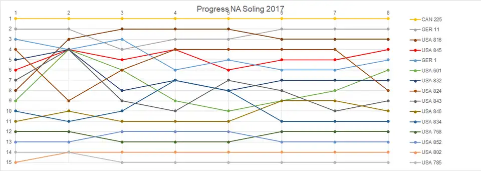 7. ^ Collins, Matias, ed. (2015). "North American Championship / SSYC, Wilmette, IL 27/08/2015 To 30/08/2015. / Rk=1.5". soling.com. International Soling Association. Retrieved 16 October 2019.