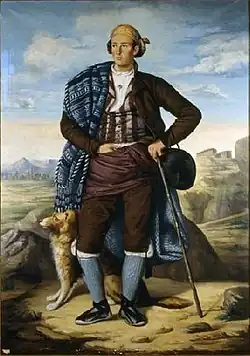 ![]() 1861 portrait of an Aragonese man with a sombrero calañés hanging from his left arm. | |