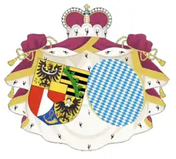 - ^ English: Duchess in Bavaria. Regarding personal names: Herzogin was a title before 1919, but now is regarded as part of the surname. It is translated as Duchess. Before the August 1919 abolition of nobility as a legal class, titles preceded the full name when given (Graf Helmuth James von Moltke). Since 1919, these titles, along with any nobiliary prefix (von, zu, etc.), can be used, but are regarded as a dependent part of the surname, and thus come after any given names (Helmuth James Graf von Moltke). Titles and all dependent parts of surnames are ignored in alphabetical sorting. The masculine form is Herzog.