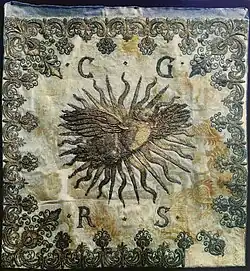 When Tarnowska left her father's home in 1939, he gave her the personal seventeenth-century jack ("proporzec"), of King Karl Gustav of Sweden, a trophy won at his army's defeat on the Tarnowski estate during the Deluge. In 1957, she and her brother Stanislaw, also living in London, decided to donate the flag to the Wawel Art Collection in Kraków, where it remains. The government highlighted the cultural event and granted the visiting party visas, but Tarnowska declined the offers of expenses-paid travel and hospitality.[10] The siblings paid their own expenses and were allowed to revisit Rudnik.