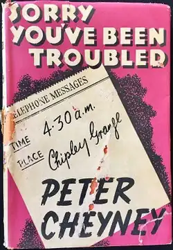 Sorry You've Been Troubled is a 1942 thriller novel by the British writer Peter Cheyney.[1] It was the fifth book in his series featuring the hardboiled London-based private detective Slim Callaghan. It was published in the United States under the alternative title of Farewell to the Admiral.