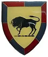 The wildebeest as the College’s symbol had been adopted around 1924. A shoulder flash was developed around 1963 displaying the wildebeest in a roundel of blue and maroon. The Wildebeest concept had originated from a trophy given to the Military School from the Mounted Rifles.