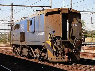 In 2000, Spoornet began a project to rebuild Series 2 to 11 Class 6E1 locomotives to Class 18E, Series 1 and Series 2 at the Transnet Rail Engineering (TRE) workshops at Koedoespoort. In the process, the cab at the no. 1 end was stripped of all controls and the driver's front and side windows were blanked off to have a toilet installed, thereby forfeiting the locomotive's bi-directional ability.[6][7]