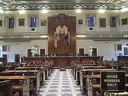 Unlike many legislatures, seating on the floor is not divided by party, but is arranged by county delegation – a legacy of the original apportionment of the chamber. Until 1964, each of South Carolina's counties was a legislative district, with the number of representatives determined by the county's population. It meets from the second week of January into May.