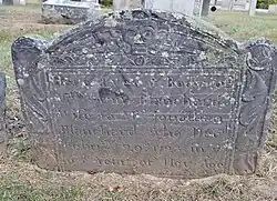 A cemetery adjacent to the church was established soon after the founding of the parish. The first person to be buried there was Robert Russel in December 1710 however the earliest surviving inscription is on Mrs. Ann Blanchard's stone, who died on February 29, 1723. Over time the cemetery grew through purchasing and receiving land from neighbors.[13]