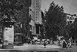 In 1881, there was opened the second horsecar line in the city, connecting the Union of Lublin Square with Muranów.[70][71] In 1908, it was replaced with an electric tram line.[72] In 1892, next to the square, between Puławska and Chocimska Streets, was opened the Warsaw narrow-gauge railway station (later renamed to Warsaw Mokotów in 1930). It was part of two lines operated by the Wilanów Railway. In 1898, there was also added line of the Grójec Commuter Railway.[73][74] The station was moved in 1935 further south, to the intersection of Puławska and Odyńca Streets, where it operated until 1938.[75]