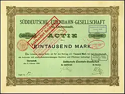 Share of the Süddeutsche Eisenbahn-Gesellschaft, issued 1895