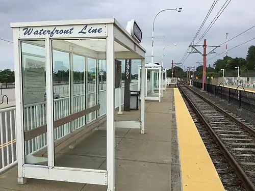The station opened on July 10, 1996,[2] when light rail service was extended 2.2 miles from Tower City through The Flats and along the lakefront. This extension was designated the Waterfront Line, although it is actually an extension of the Blue and Green Lines, as trains leaving this station toward Tower City continue along the Blue or Green Line routes to Shaker Heights.