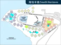 South Horizons (Chinese: 海怡半島) is a private housing estate located in Aberdeen at the western end of Ap Lei Chau (a.k.a. Aberdeen Island), in the Southern District of Hong Kong.[1] Developed by Secan Limited,[2] a Hutchison Whampoa associate company,[3] it consists of 34 blocks, ranging in height from 25 to 42 storeys, completed between 1993 and 1995.[4] Census data indicated that South Horizons had a population of 31,496 in 2011 and was the most populated among the private and public estates of the district.[5]