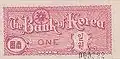 1 hwan 111 × 54 mm Pink Bank name (Hanja), value (Hangul and Hanja) Bank of Korea's symbol February 17, 1953 June 10, 1962