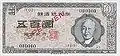 1. ^ Bank of Korea. 우리나라의 화폐, 1953년~1962년 (in Korean). Archived from the original on March 10, 2007. Retrieved December 4, 2006. 긴급통화조치로 화폐단위가 圓에서 圜으로 바뀌었음에도 이 당시 은행권은 圜을 '원'으로 표기하고 있는데 이는 동 은행권이 긴급통화조치의 결정 이전에 다른 용도로 미국연방인쇄국에서 제조된 것이기 때문." → Translation: "With the Emergency Currency Measures, and also the exchange of currency from the won to the hwan, at the time "won" was inscribed for "hwan" on the new banknotes; and that's because, as a result of a previous Emergency Currency Measure's decision, these new notes to be issued were to be manufactured by the US Government Printing Office.