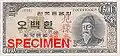 500 hwan 156 × 73 mm Lee Sung-man Value March 26, 1956