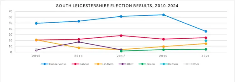7. ^ "New Seat Details - Leicestershire South". www.electoralcalculus.co.uk. Retrieved 9 April 2024.
