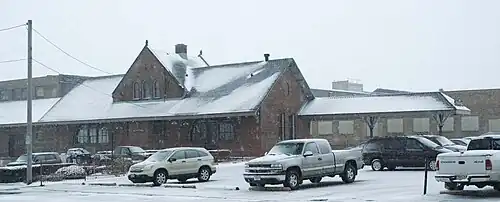 South Milwaukee station is a former railroad station located at 1111 Milwaukee Ave., South Milwaukee, Wisconsin.[2] The station was built in 1893 for the Chicago & Northwestern Railway replacing a frame depot from 1885. Architect Charles Sumner Frost designed the Romanesque station.[3] The depot, located on the east (southbound) platform, included ladies and gentlemen's waiting rooms, restrooms, a ticket office, freight office, train dispatcher's office, and two large rooms for baggage, express, and storage.