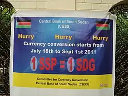 - ^ "South Sudan plans to change national currency to shore up economy - Xinhua | English.news.cn". www.xinhuanet.com. Retrieved 10 October 2020.