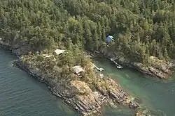 Simson Provincial Park, established in 1986 and named after pioneer Calvert Simson,[1] occupies the majority of the southern part of South Thormanby Island. The northern half of the island is predominately private property, with a concentration of seasonal cottages along Buccaneer Bay and Water Bay.[2]